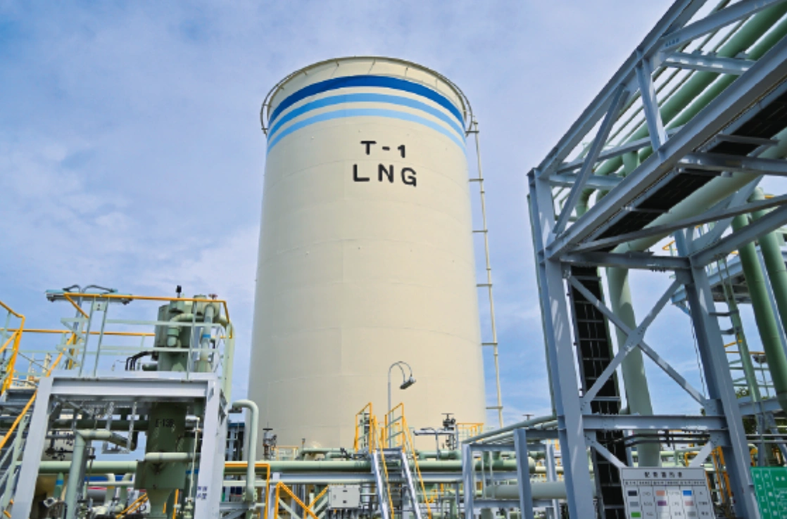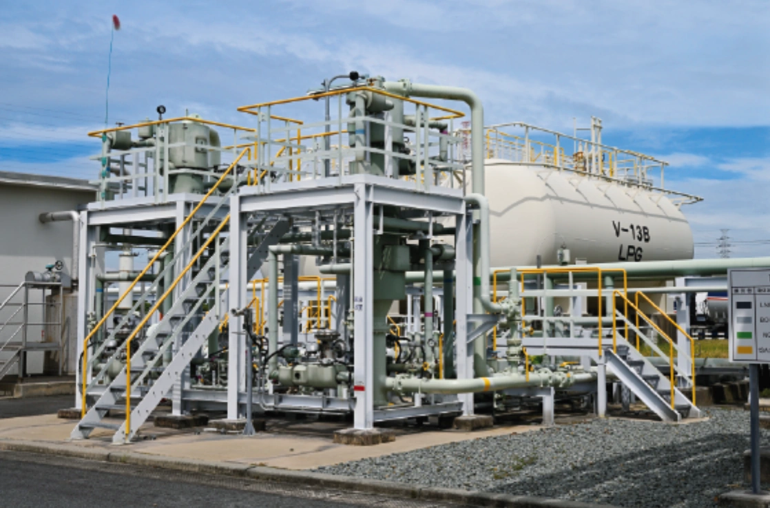 LNG気化器で気化した天然ガスは、熱量調整装置でLPG(ブタン)と混合され、安定した熱量に調整することで、お客さまに供給する都市ガス(13A)になります。