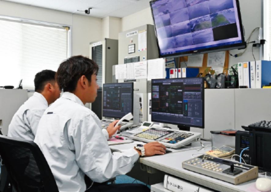 都市ガスの製造、貯蔵、保安、防災など工場全体の管理は運転管理室から集中的にコントロールしています。