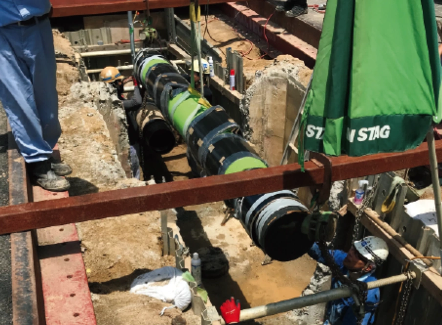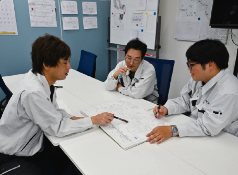 大牟田市から熊本市の間、約63kmに敷設されているパイプラインの工事、維持及び管理を行っています。エネルギーの安定供給のためにはパイプラインの安全確保が不可欠であり、公益企業としての誇りをもって日々の業務に取り組んでいます。主に次のような業務を行っています。